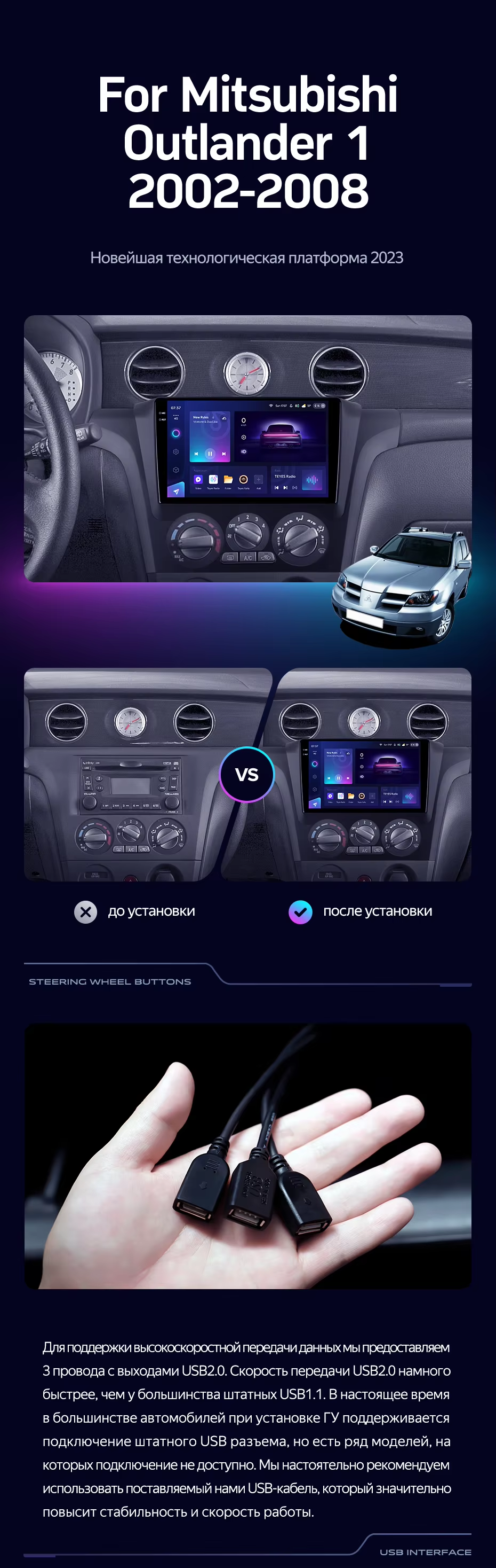 Штатная магнитола Teyes CC3 2K 4/32 Mitsubishi Outlander 1 (2002-2008) F1 - купить всего за 39 470 руб. в интернет-магазине в Набережных Челнах Teyes.com.ru. ✓ Самый лучший выбор мультимедиа ✓ Лучшая замена штатному ГУ ✓ Тел. +7 (800) 775-31-74