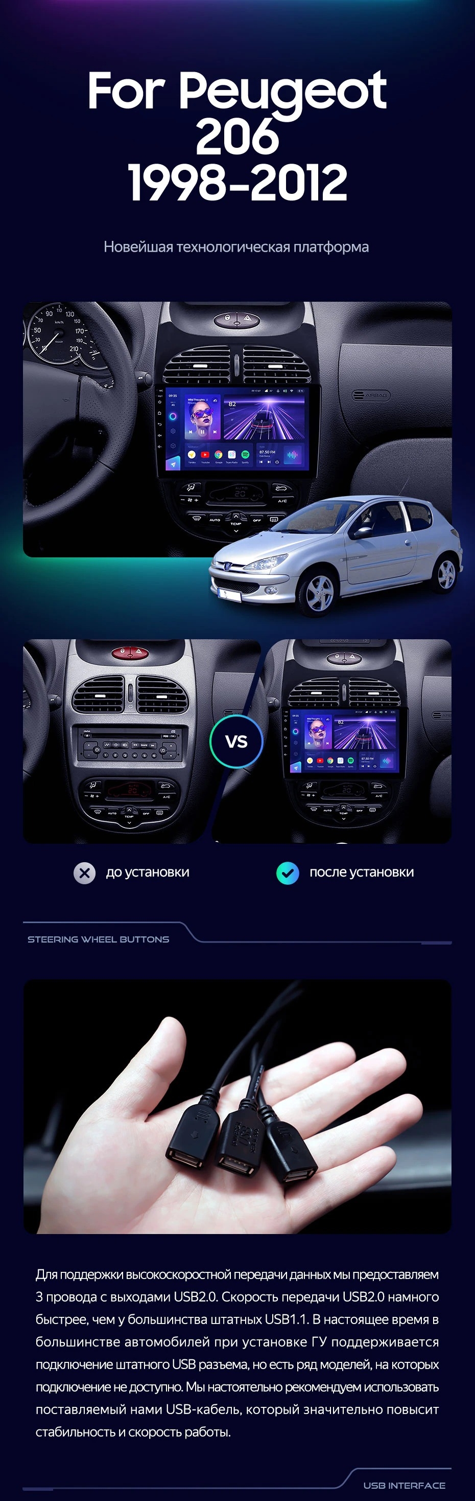Штатная магнитола Teyes CC3L 4/32 Peugeot 206 (1998-2012) F1 - купить всего за 24 600 руб. в интернет-магазине в Набережных Челнах Teyes.com.ru. ✓ Самый лучший выбор мультимедиа ✓ Лучшая замена штатному ГУ ✓ Тел. +7 (800) 775-31-74