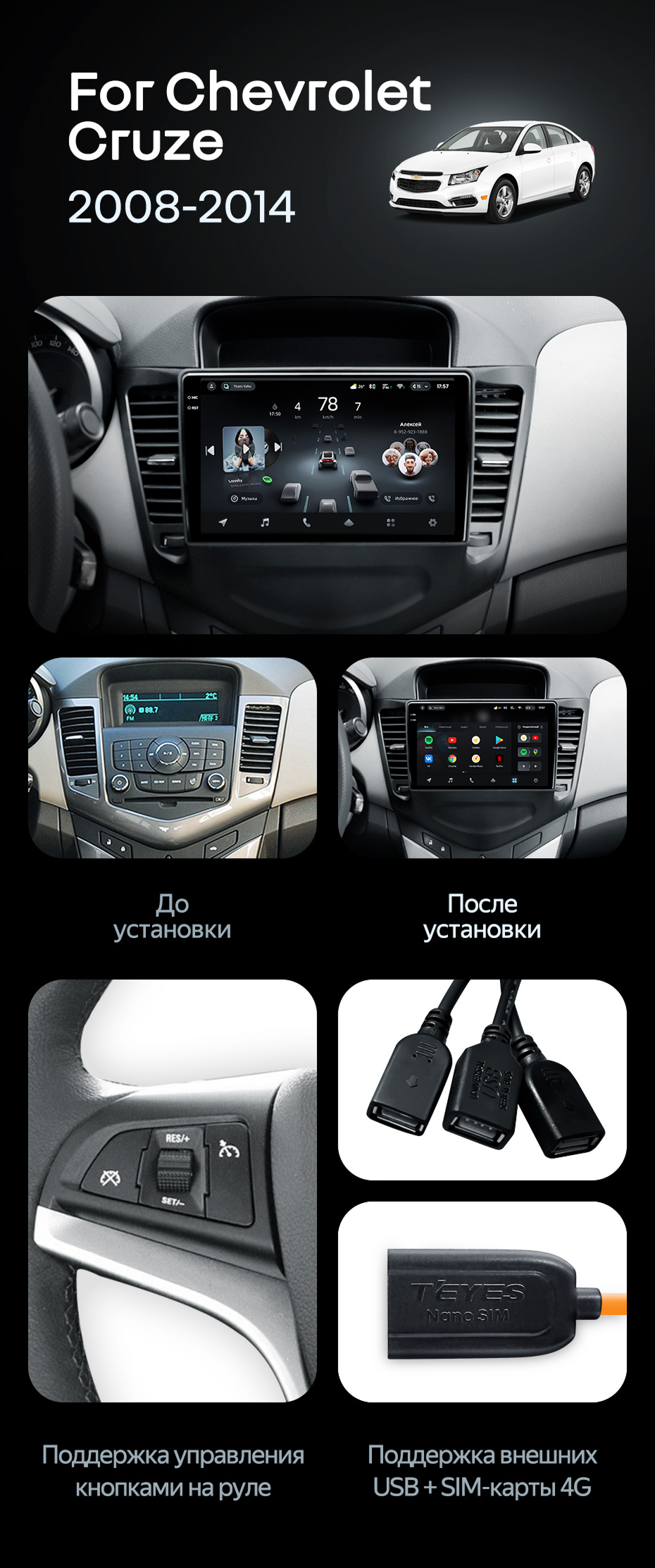 Штатная магнитола Teyes CC4 6/64 Chevrolet Cruze J300 (2008-2014) - купить всего за 48 050 руб. в интернет-магазине в Набережных Челнах Teyes.com.ru. ✓ Самый лучший выбор мультимедиа ✓ Лучшая замена штатному ГУ ✓ Тел. +7 (800) 775-31-74