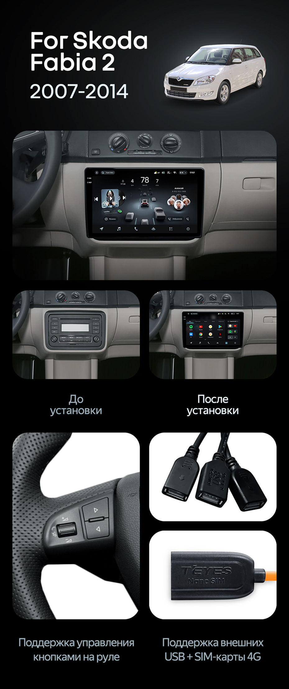 Штатная магнитола Teyes CC4 6/64 Skoda Fabia 2 (2007-2014) - купить всего за 47 800 руб. в интернет-магазине в Набережных Челнах Teyes.com.ru. ✓ Самый лучший выбор мультимедиа ✓ Лучшая замена штатному ГУ ✓ Тел. +7 (800) 775-31-74
