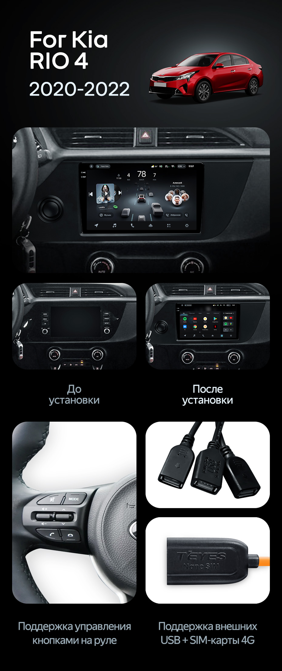 Штатная магнитола Teyes CC4 Pro 12/256 Kia Rio 4 IV FB (2020-2022) - купить всего за 66 610 руб. в интернет-магазине в Набережных Челнах Teyes.com.ru. ✓ Самый лучший выбор мультимедиа ✓ Лучшая замена штатному ГУ ✓ Тел. +7 (800) 775-31-74