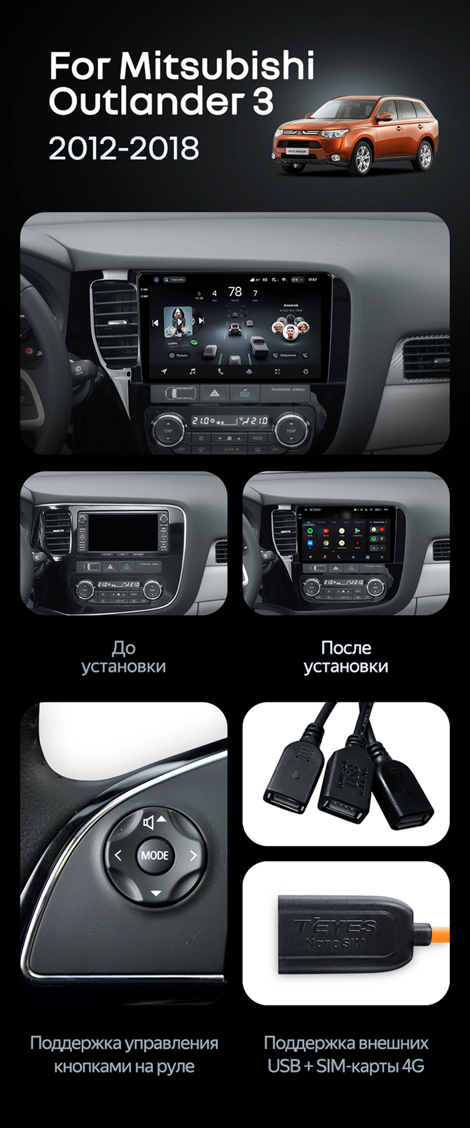 Штатная магнитола Teyes CC4 Pro 12/256 Mitsubishi Outlander 3 GF0W GG0W (2012-2018) Тип-B - купить всего за 68 620 руб. в интернет-магазине в Набережных Челнах Teyes.com.ru. ✓ Самый лучший выбор мультимедиа ✓ Лучшая замена штатному ГУ ✓ Тел. +7 (800) 775-31-74