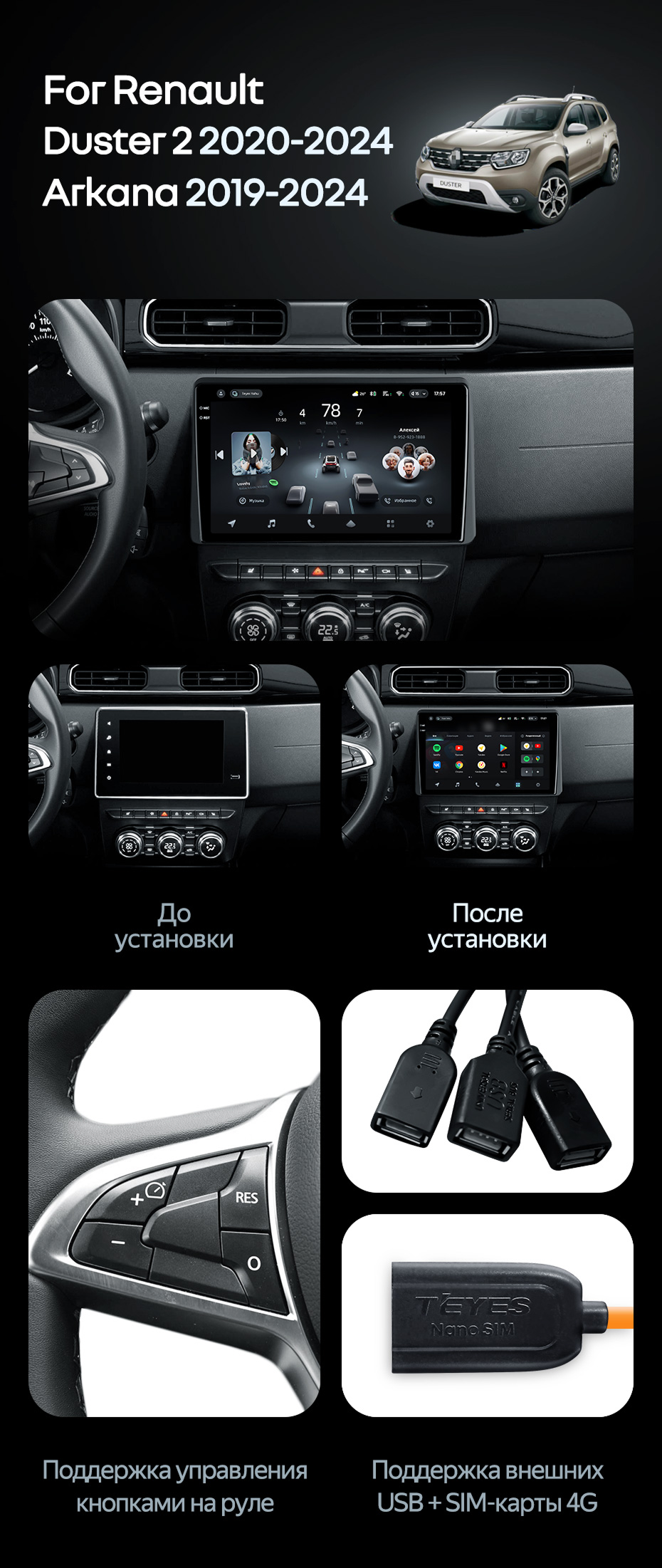 Штатная магнитола Teyes CC4 Pro 12/256 Renault Duster HM 2 (2020-2023) F1 - купить всего за 68 470 руб. в интернет-магазине в Набережных Челнах Teyes.com.ru. ✓ Самый лучший выбор мультимедиа ✓ Лучшая замена штатному ГУ ✓ Тел. +7 (800) 775-31-74