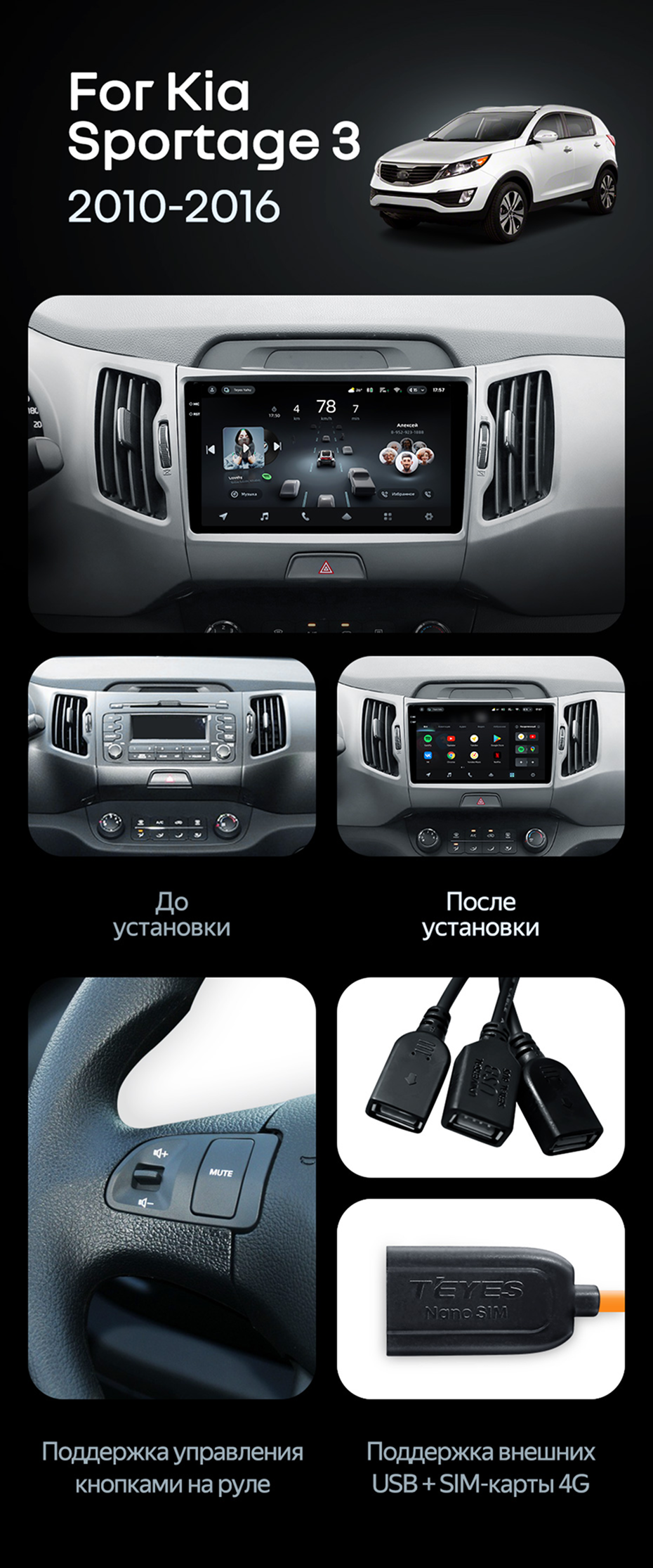 Штатная магнитола Teyes CC4 Pro 8/128 Kia Sportage 3 SL (2010-2016) Тип-B - купить всего за 60 820 руб. в интернет-магазине в Набережных Челнах Teyes.com.ru. ✓ Самый лучший выбор мультимедиа ✓ Лучшая замена штатному ГУ ✓ Тел. +7 (800) 775-31-74