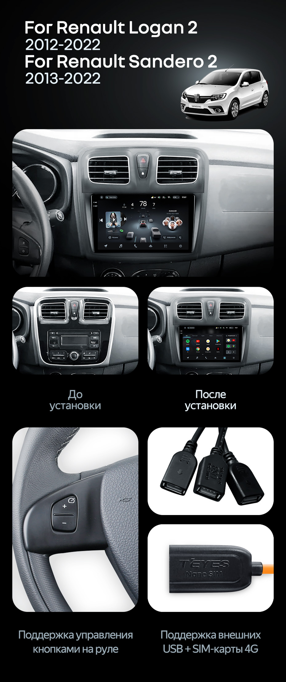 Штатная магнитола Teyes CC4 Pro 8/128 Renault Logan 2 (2012-2022) F2 - купить всего за 58 650 руб. в интернет-магазине в Набережных Челнах Teyes.com.ru. ✓ Самый лучший выбор мультимедиа ✓ Лучшая замена штатному ГУ ✓ Тел. +7 (800) 775-31-74