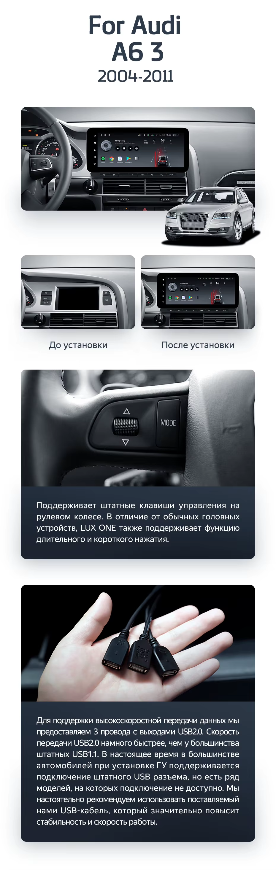 Штатная магнитола Teyes LUX ONE 4/64 Audi A6 3 C6 (2004-2011) - купить всего за 43 400 руб. в интернет-магазине в Набережных Челнах Teyes.com.ru. ✓ Самый лучший выбор мультимедиа ✓ Лучшая замена штатному ГУ ✓ Тел. +7 (800) 775-31-74