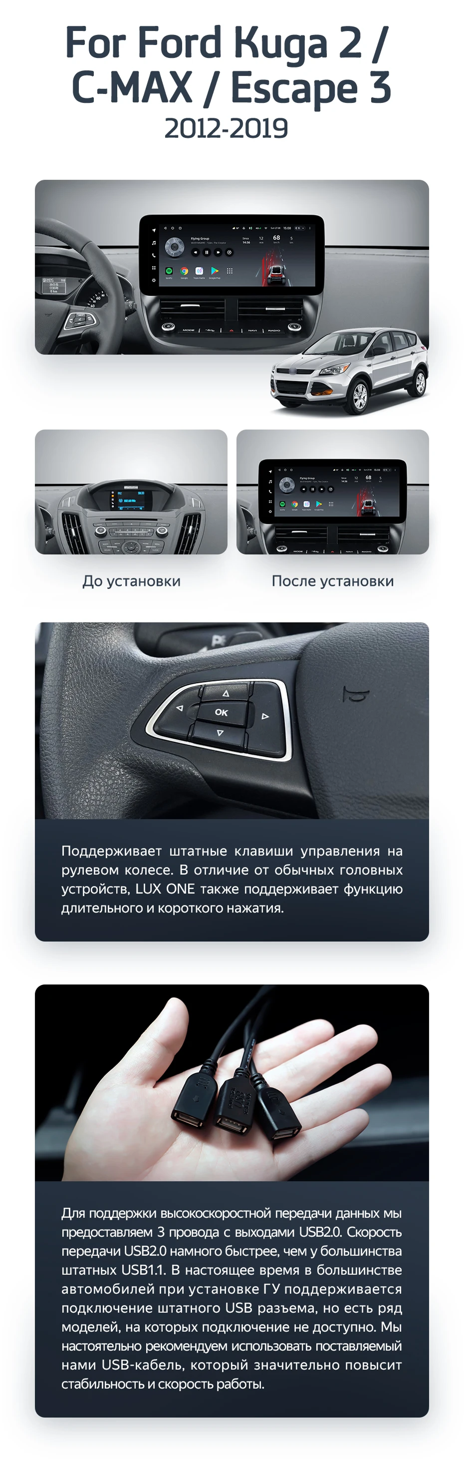 Штатная магнитола Teyes LUX ONE 4/64 Ford Escape 3 (2012-2019) - купить всего за 42 300 руб. в интернет-магазине в Набережных Челнах Teyes.com.ru. ✓ Самый лучший выбор мультимедиа ✓ Лучшая замена штатному ГУ ✓ Тел. +7 (800) 775-31-74