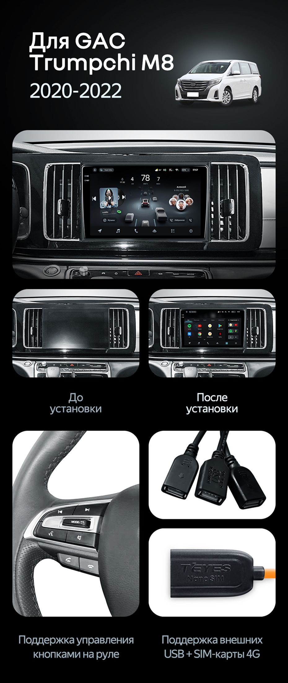 Переходная рамка GAC Trumpchi M8 (2020-2022) (10") - купить всего за 5 400 руб. в интернет-магазине в Набережных Челнах Teyes.com.ru. ✓ Самый лучший выбор мультимедиа ✓ Лучшая замена штатному ГУ ✓ Тел. +7 (800) 775-31-74